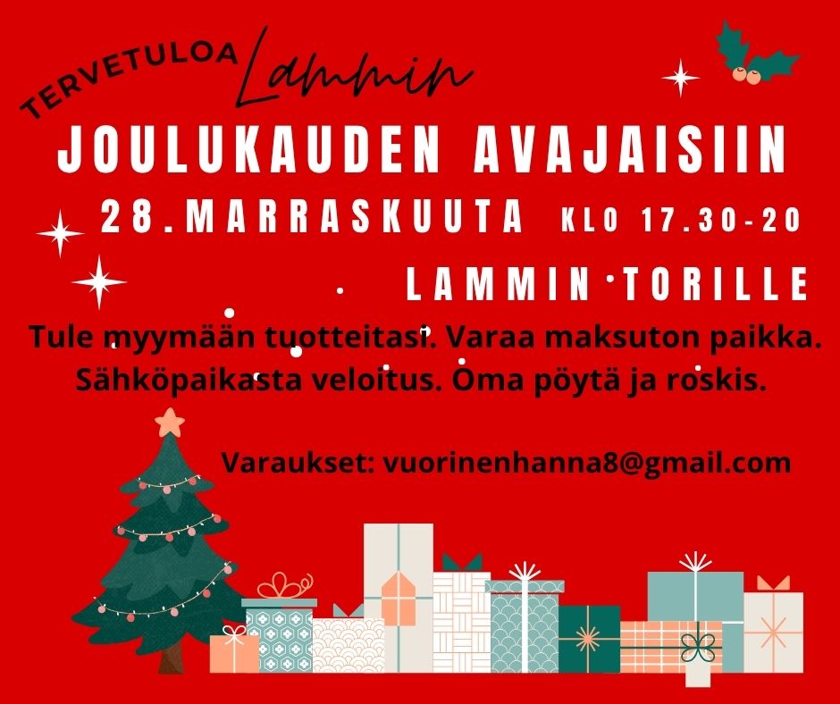 LAMMIN JOULUKAUDEN AVAJAISET JÄRJESTETÄÄN LAMMIN TORILLA 28.11.2025 KLO 17.30-20.00
