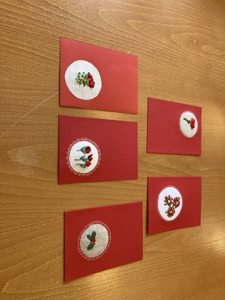 ![]() JOULUN LÄHESTYESSÄ JOULUKORTIT OLIVAT VUOROSSA. TEIMME NIITÄ SILKKINAUHATEKNIIKALLA. |