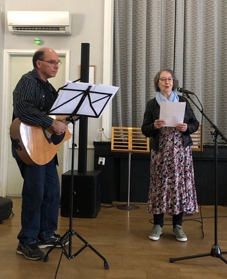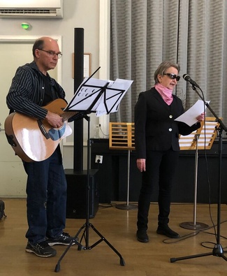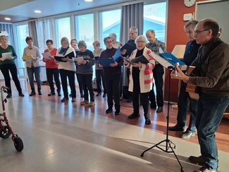 ![]() Ystävyyden lauluryhmän vuoden ensimmäinen vierailu palvelukodeissa Reijo Mikkola säesti kitaralla ja Reima oli lauluvahvistuksena |